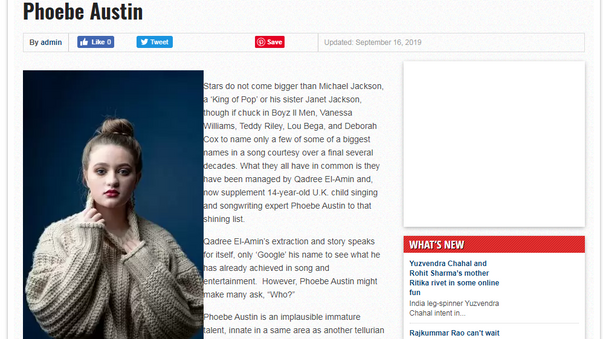 Phoebe現在正在製作她的首張專輯“ Perfectly / Imperfect-Phoebe Austin的神奇神秘世界”,這是Stevie Eagle E製作的。Phoebe將發行單曲,直到專輯完成,然後編譯這些單曲以製作專輯。菲比·奧斯汀(Phoebe Austin)最近與超級經紀人卡德里·阿明(Qadree El-Amin)簽約,後者管理過其他名人邁克爾·傑克遜。菲比·奧斯汀(Phoebe Austin)的未來未寫下來,但看起來很光明。很亮